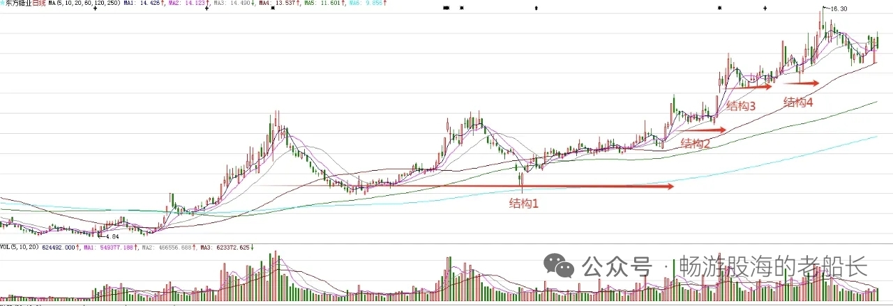 东方锆业,今天冲高回落,小幅度调整。短线来看,周三股价还有调整。但是,调整在六十日均线上方结束的概率比较大。六十日均线处,是结构的下轨。图中标注的结构1突破,意味着股价处在比较大的上涨趋势。结构2是结构1突破后的回踩,意味着后期有波段上涨。结构3和结构4突破,意味着波段上不远了。短线调整结束后,波段上涨有望拉开帷幕。