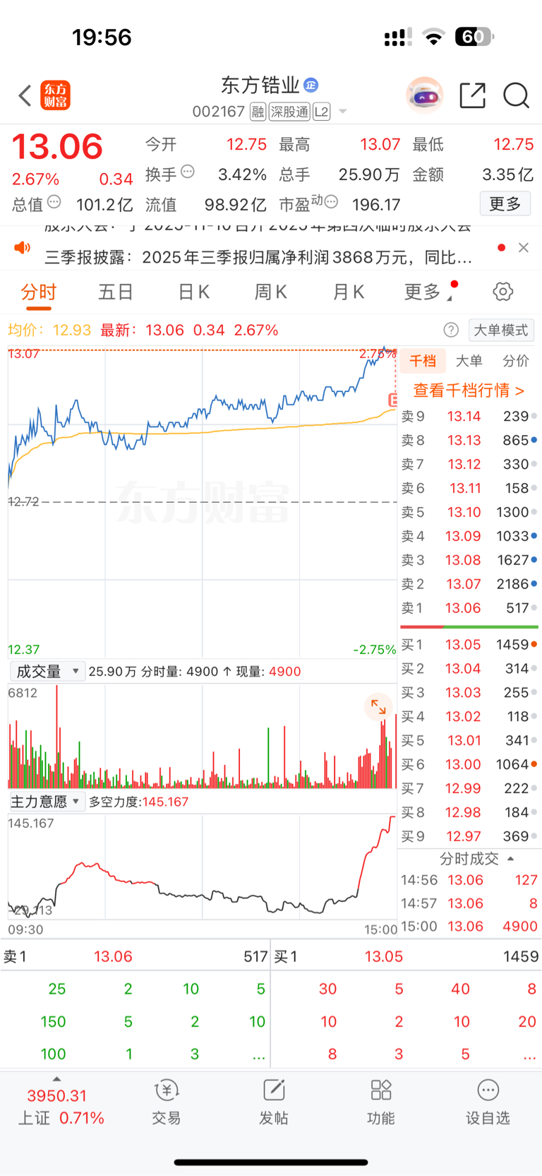 $东方锆业(SZ002167)$ 说别的没用,全仓进来了。我就想问一下,下周一是吃面还是吃肉?