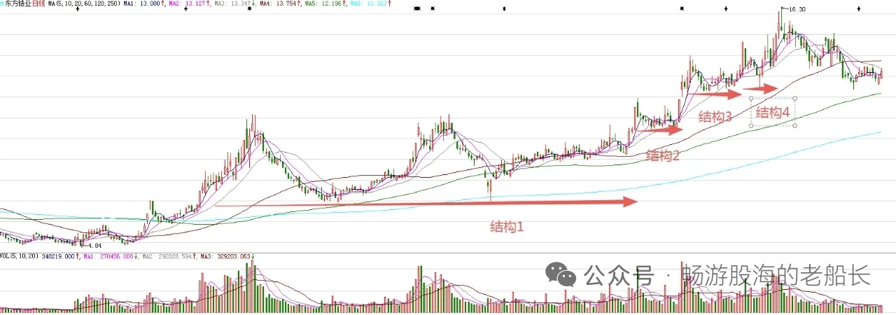 这里也是结构3和结构4的下轨,完成调整是正常的。图中标注的结构1和结构2突破,意味着股价处在比较大的波段上涨,后期有波段上涨。接下来,股价大概率会逐步进入新的波段上涨。