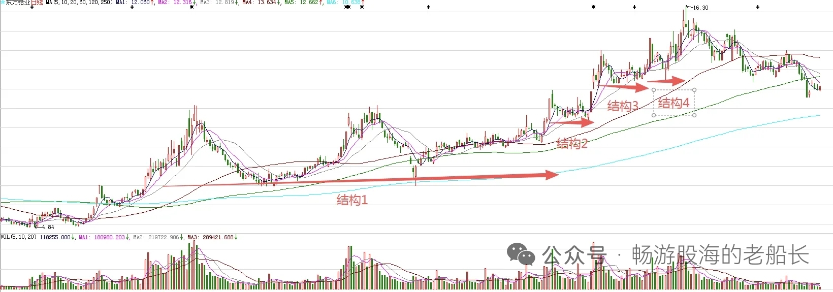 走出了企稳信号。下周,股价大概率企稳回升。调整,略微跌破了结构3和结构4的下轨,调整的空间也到了。因此,下周,股价大概率会结束中期调整。图中标注的大型结构1突破,意味着股价处在上涨趋势。结构2是结构1突破后的回踩,意味着后期有波段上涨。结构3和结构4是结构2突破后的回踩,意味着波段上涨不远了。现在,结构突破后的回踩结束信号出现了。接下来,波段上涨大概率会逐步开启。