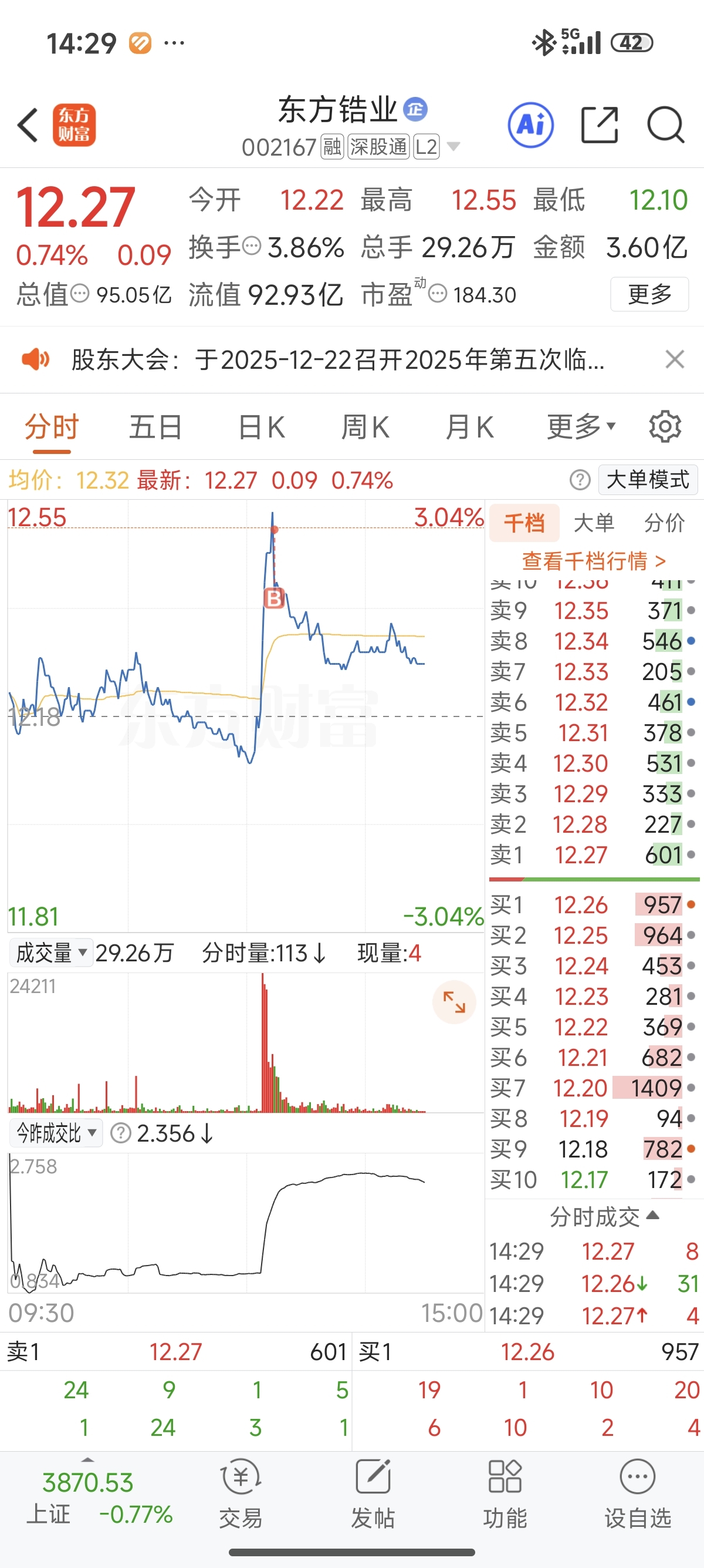 $东方锆业(SZ002167)$ 山顶站的稳稳的