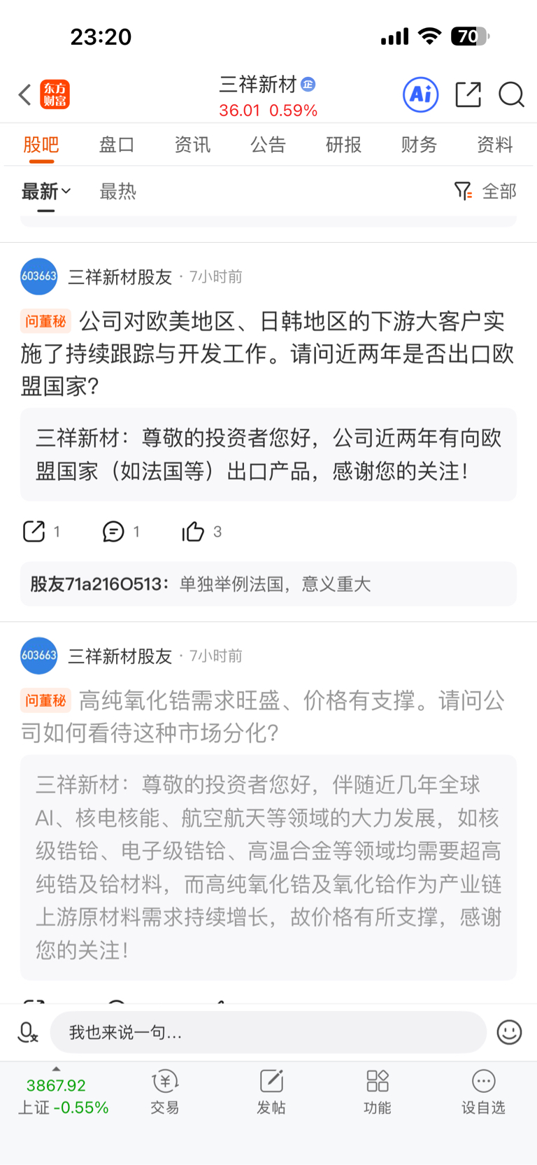 温馨提示: 1.根据《证券法》规定,禁止编造、传播虚假信息或者误导性信息,扰乱证券市场;2.用户在本社区发表的所有资料、言论等仅代表个人观点,与本网站立场无关,不对您构成任何投资建议。用户应基于自己的独立判断,自行决定证券投资并承担相应风险。《东方财富社区管理规定》