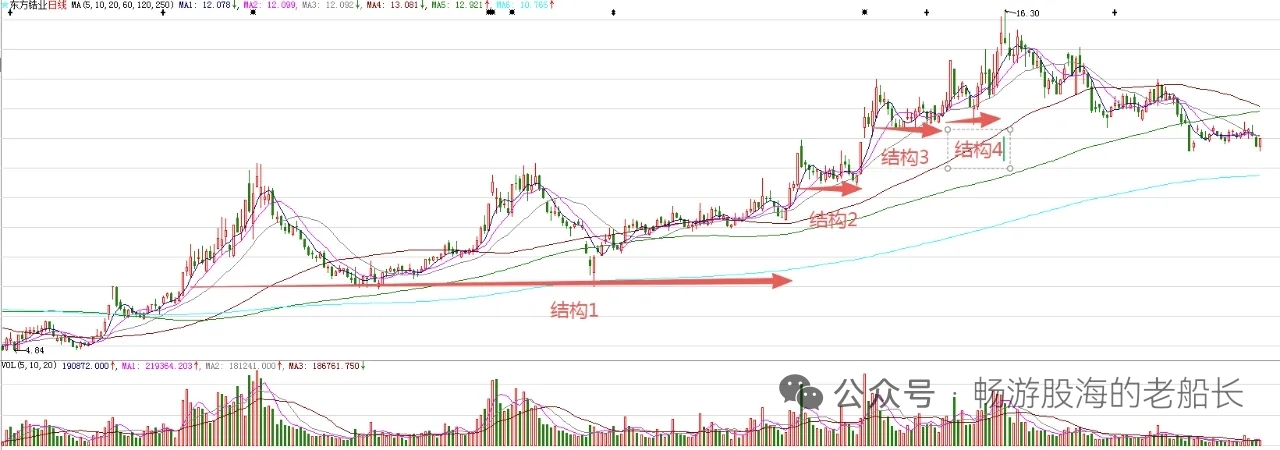 走出了下影线比较明显的小阳线,释放了短线企稳信号。周四,股价大概率继续上涨。目前,日线级别的三条中短期均线已经处在粘合状态,意味着股价随时会结束中期调整。图中标注的大型结构1突破,意味着股价处在比较大的上涨趋势。结构2突破,意味着后期有波段上涨。结构3和结构4突破,意味着波段上涨即将开始。