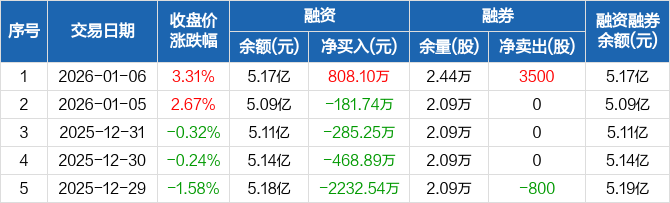 东方锆业:融资净买入808.1万元,融资余额5.17亿元(01-06)