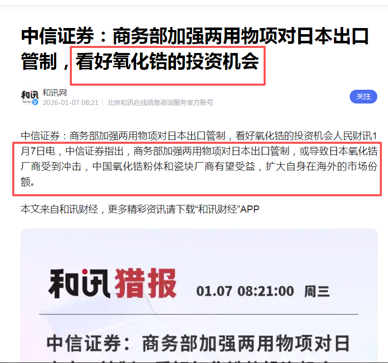 商务部加强两用物项对日本出口管制,利好氧化锆---------妥妥的军工物资---战略资产
