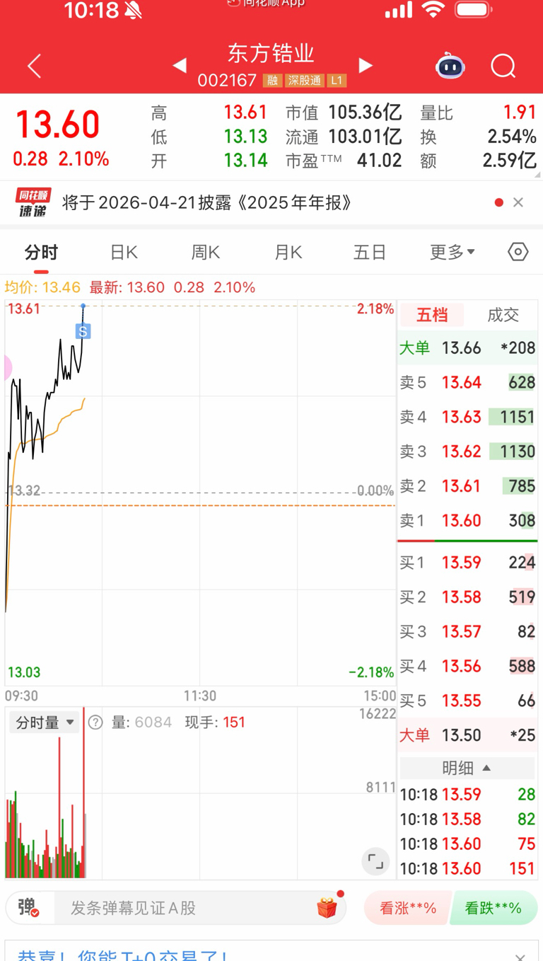 $东方锆业(SZ002167)$ 哎,这