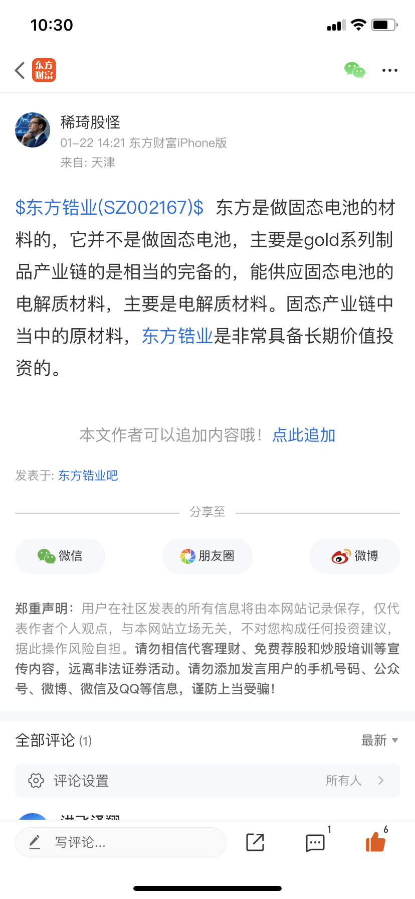 温馨提示: 1.根据《证券法》规定,禁止编造、传播虚假信息或者误导性信息,扰乱证券市场;2.用户在本社区发表的所有资料、言论等仅代表个人观点,与本网站立场无关,不对您构成任何投资建议。用户应基于自己的独立判断,自行决定证券投资并承担相应风险。《东方财富社区管理规定》
