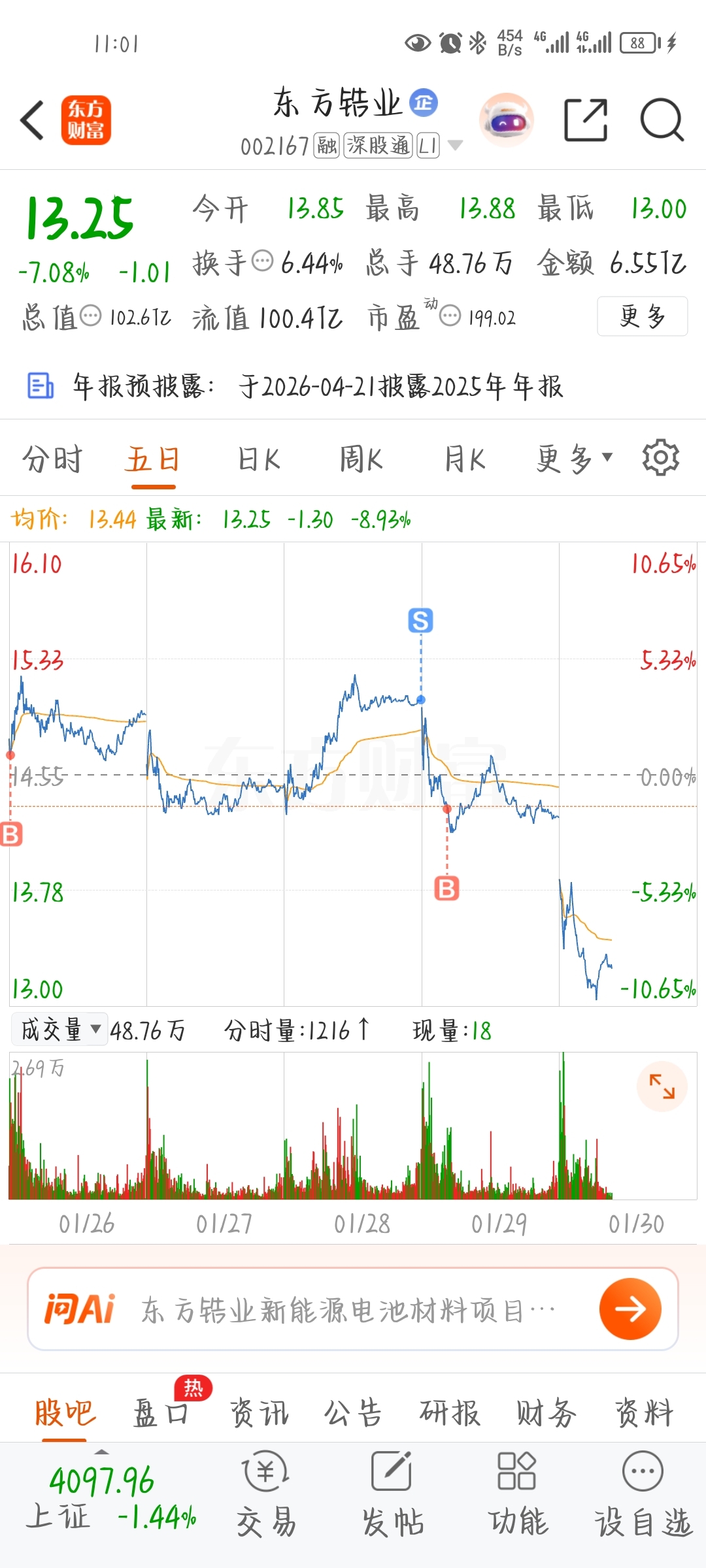 $东方锆业(SZ002167)$ 这是不是自找的,我真的是想铲自己一耳使