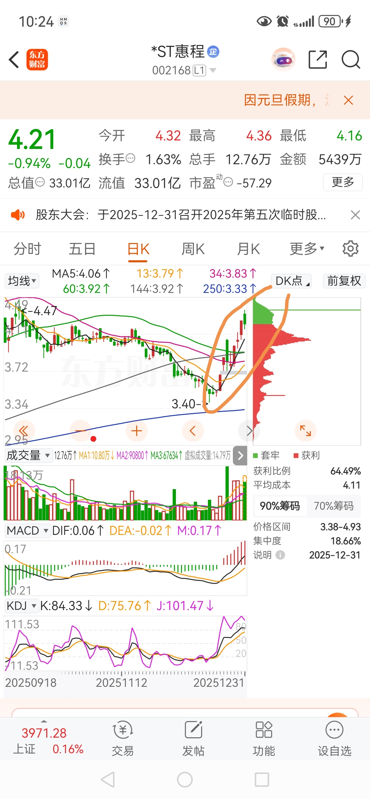 $*ST惠程(SZ002168)$ 这种k既不是稳扎稳打的长走势头,更不是红k大发力的走法。。。完全是打游击打打交换交换筹码。。。偷鸡某狗尿性既然是老套路。。。