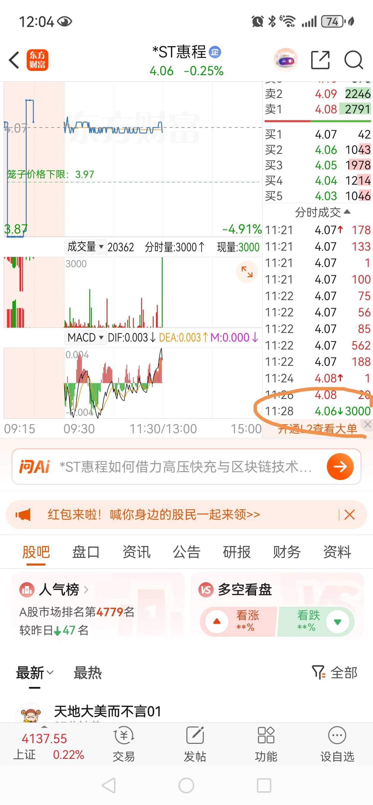 $*ST惠程(SZ002168)$  。。。盘前很多次这样的操作了。。。