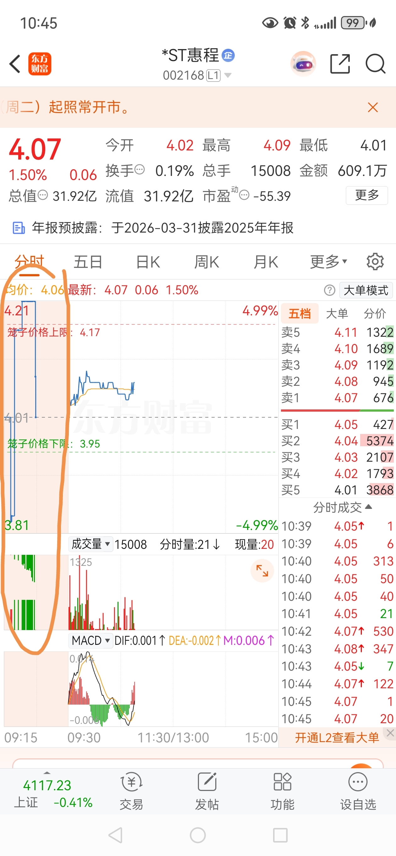 $*ST惠程(SZ002168)$ 虽说体量不大,但最近总有在跌停板和涨停板盘前分时折腾的资金。。。当然肯定不是小散,你说是庄大主力也未必是。。。就是那些有通道权利的说大不大也不是小散的资金在玩弄这股票和小散。。。