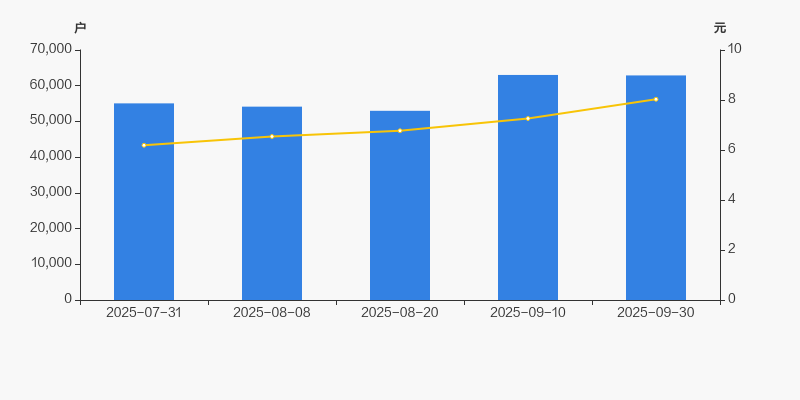 2025年7月31日至今,公司股东户数显著增长,区间涨幅为14.22%。2025年7月31日至2025年9月30日区间股价上涨29.73%。