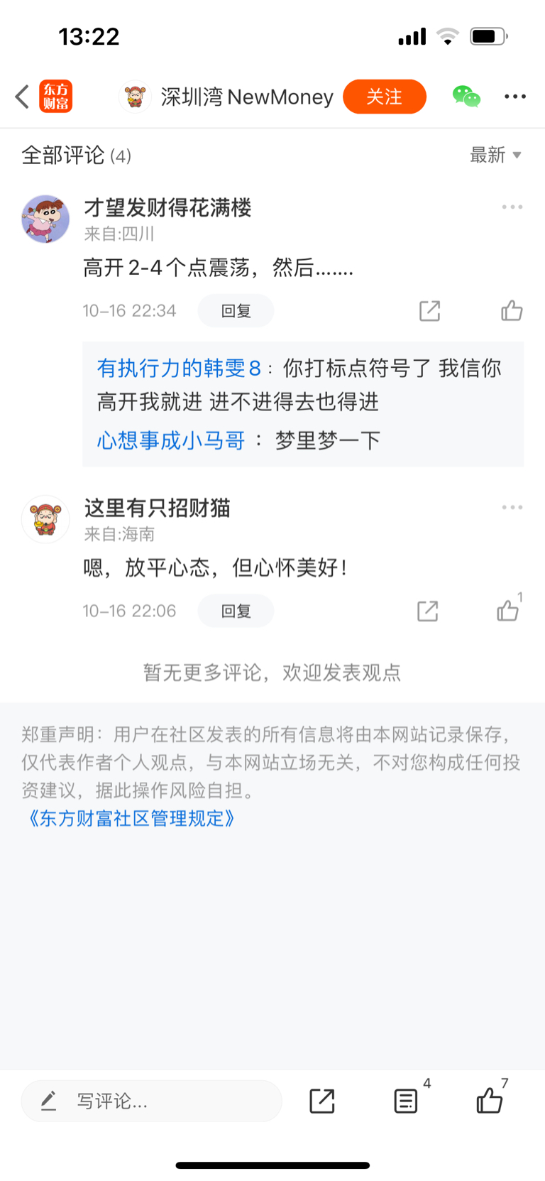 温馨提示: 1.根据《证券法》规定,禁止编造、传播虚假信息或者误导性信息,扰乱证券市场;2.用户在本社区发表的所有资料、言论等仅代表个人观点,与本网站立场无关,不对您构成任何投资建议。用户应基于自己的独立判断,自行决定证券投资并承担相应风险。《东方财富社区管理规定》