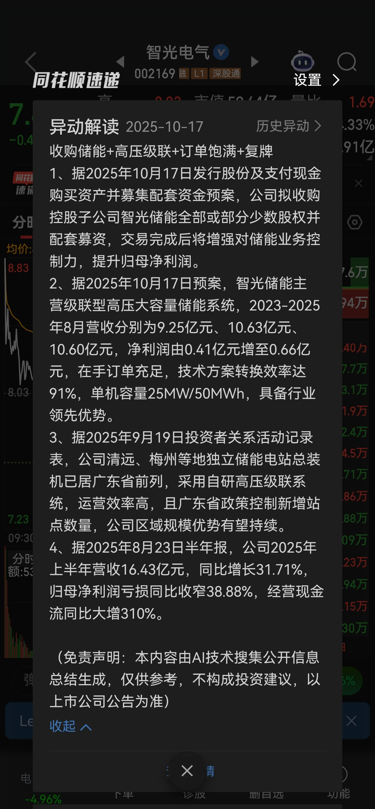 $智光电气(SZ002169)$ 收购的优质资产,又不是收购的亏损的,就算今天板块、其他票再怎么跌也轮不到你吧,明明是估值修复预期,你们非得这么玩,早盘集合竞价678多万手,硬扛也能抗的住啊,结果你们倒好,上来就挂单跑路,盘中疯狂砸盘,本身大盘、板块情绪就不好,导致承接不足,大单想跑路都得向下探,盘中情绪悲观,外加有空√搅浑水,尾盘都快收光头阴线了,至于吗你们,真的非常无语
