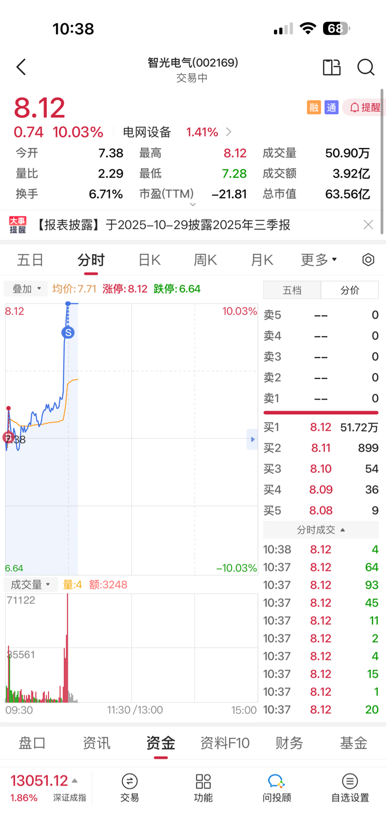 $智光电气(SZ002169)$ 可早就看好,一直没买,停牌那天买入小仓位,复牌后一直加仓猛干