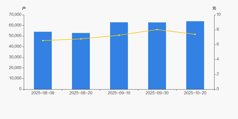 2025年8月8日至今,公司股东户数显著增长,区间涨幅为18.24%。2025年8月8日至2025年10月20日区间股价上涨12.84%。