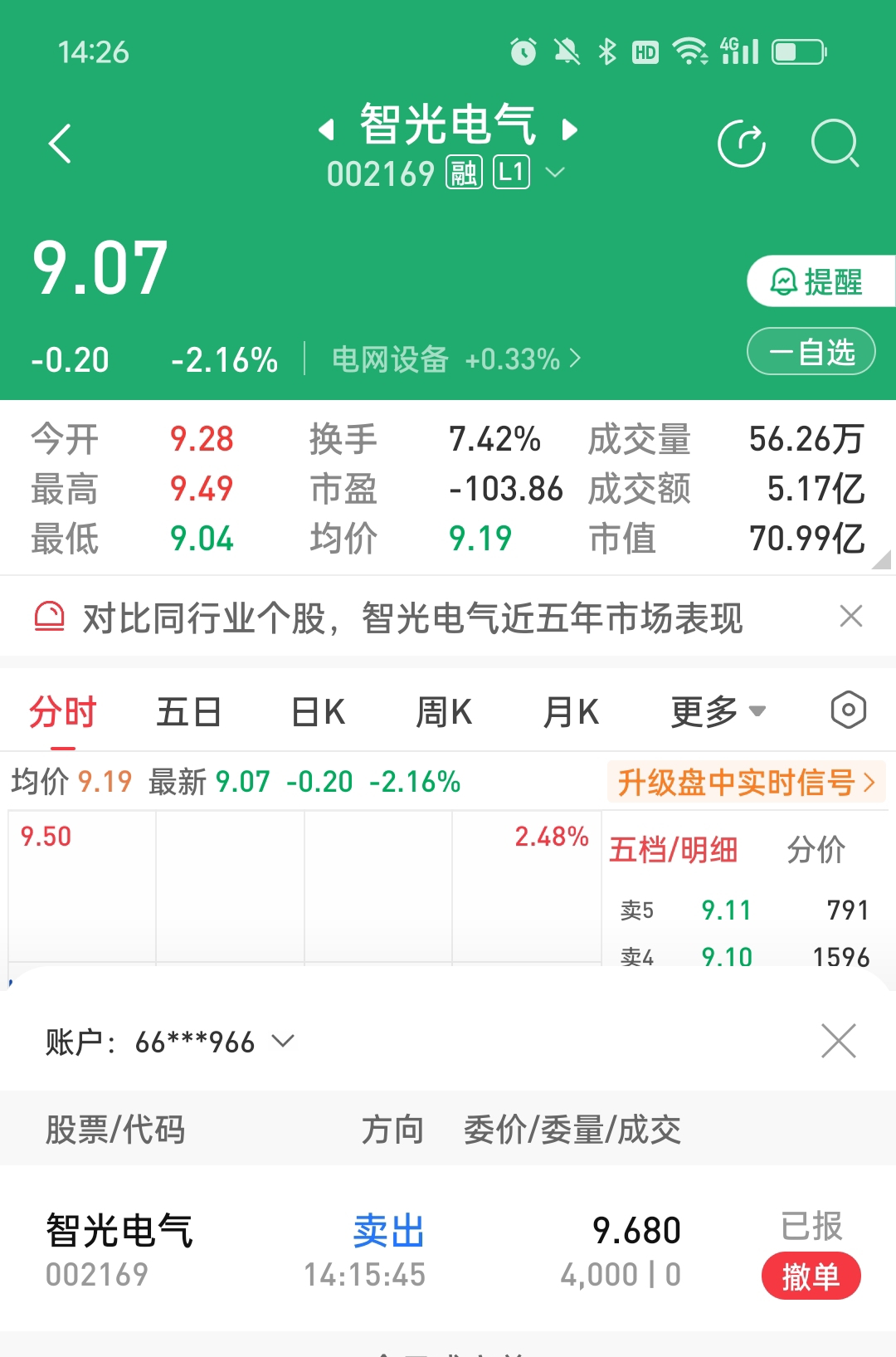 $智光电气(SZ002169)$ 今天不让我出货,下个星期一挂9.9