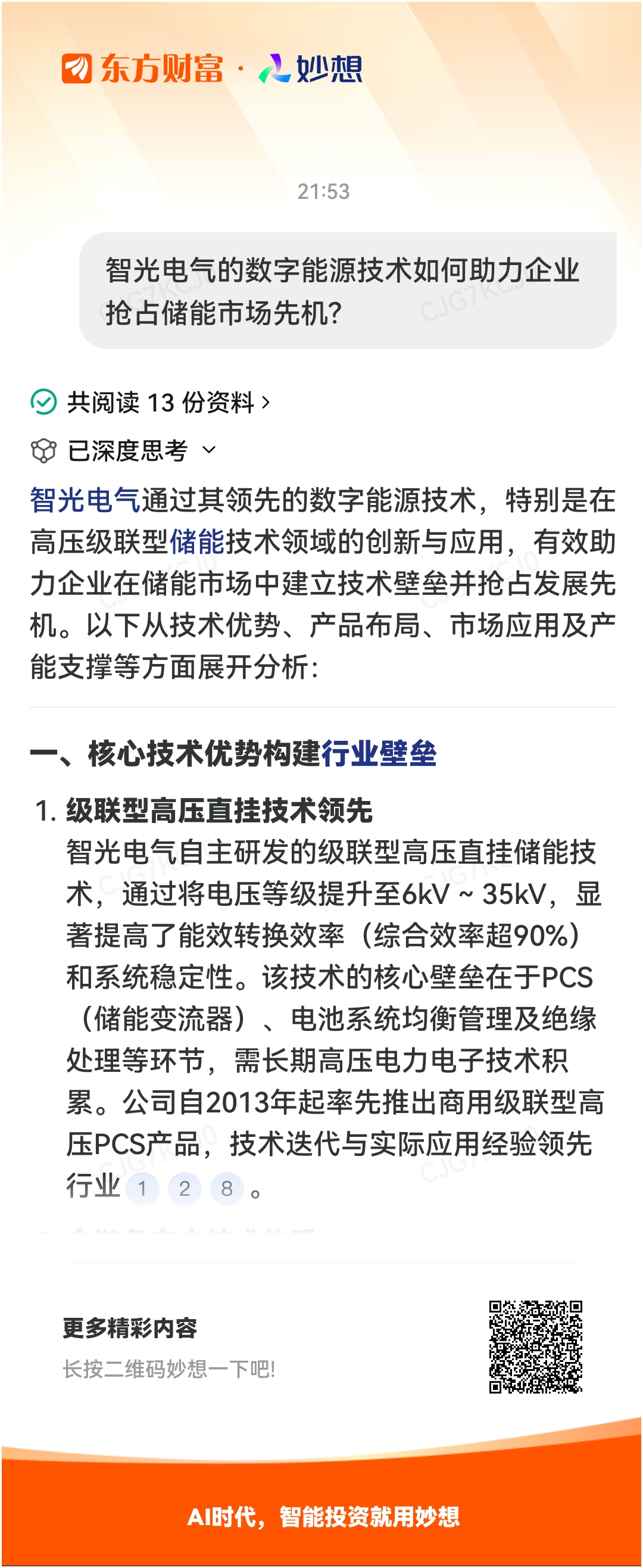 #@妙想,你怎么看?# 妙想一下:智光电气的数字能源技术如何助力企业抢占储能市场先机?智光电气明天只要守住9元,说明突破历史左侧历史重要高点有效的,主升行情未完$智光电气(SZ002169)$ $海陆重工(SZ002255)$ $多氟多(SZ002407)$