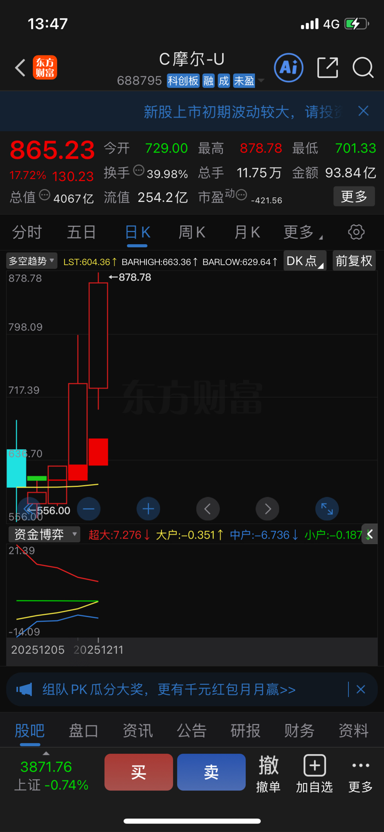 给大家点信心看看摩尔线程股价!4000多亿市值!粤芯上市至少3000亿市值!