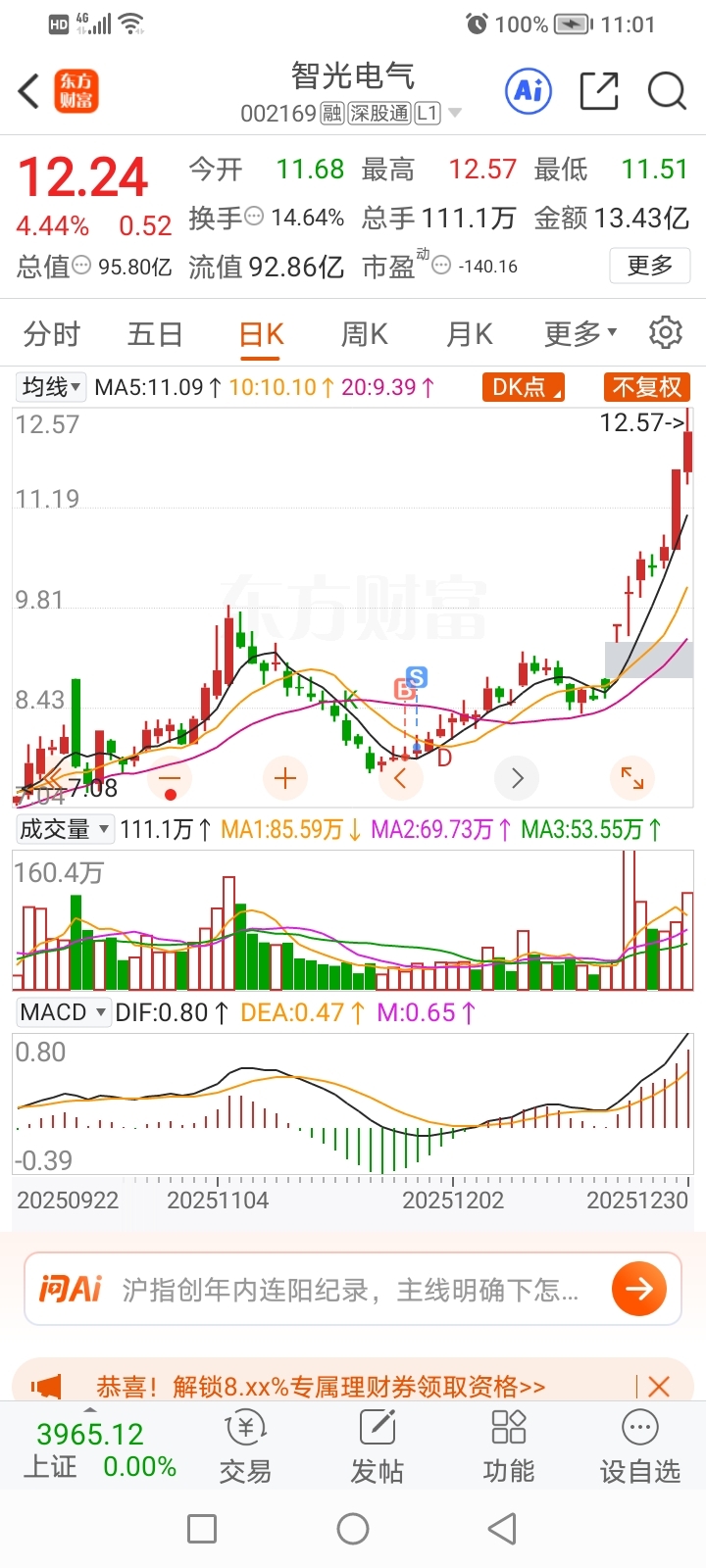 $智光电气(SZ002169)$ 这股我挣了五块钱