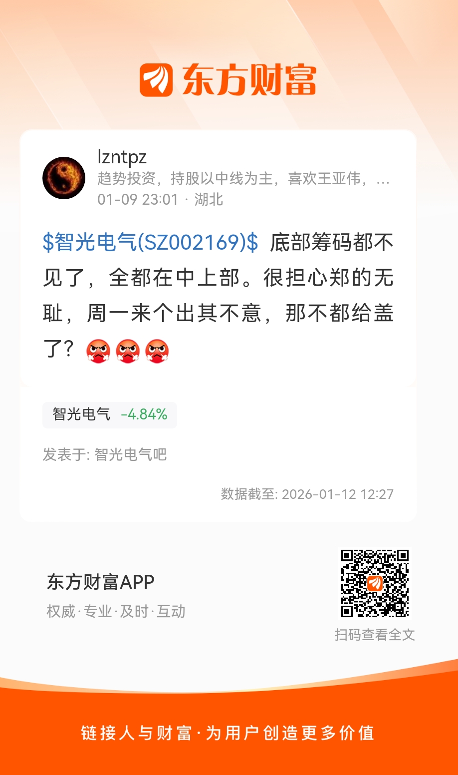 温馨提示: 1.根据《证券法》规定,禁止编造、传播虚假信息或者误导性信息,扰乱证券市场;2.用户在本社区发表的所有资料、言论等仅代表个人观点,与本网站立场无关,不对您构成任何投资建议。用户应基于自己的独立判断,自行决定证券投资并承担相应风险。《东方财富社区管理规定》
