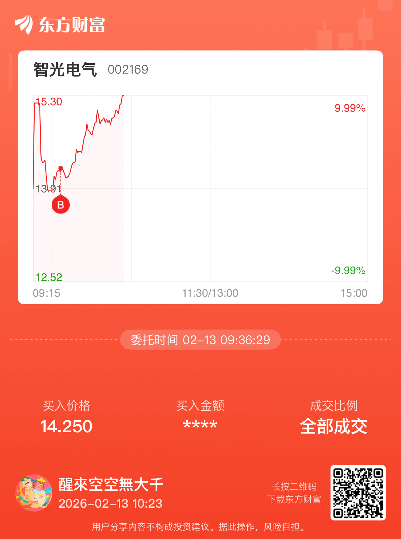 温馨提示: 1.根据《证券法》规定,禁止编造、传播虚假信息或者误导性信息,扰乱证券市场;2.用户在本社区发表的所有资料、言论等仅代表个人观点,与本网站立场无关,不对您构成任何投资建议。用户应基于自己的独立判断,自行决定证券投资并承担相应风险。《东方财富社区管理规定》