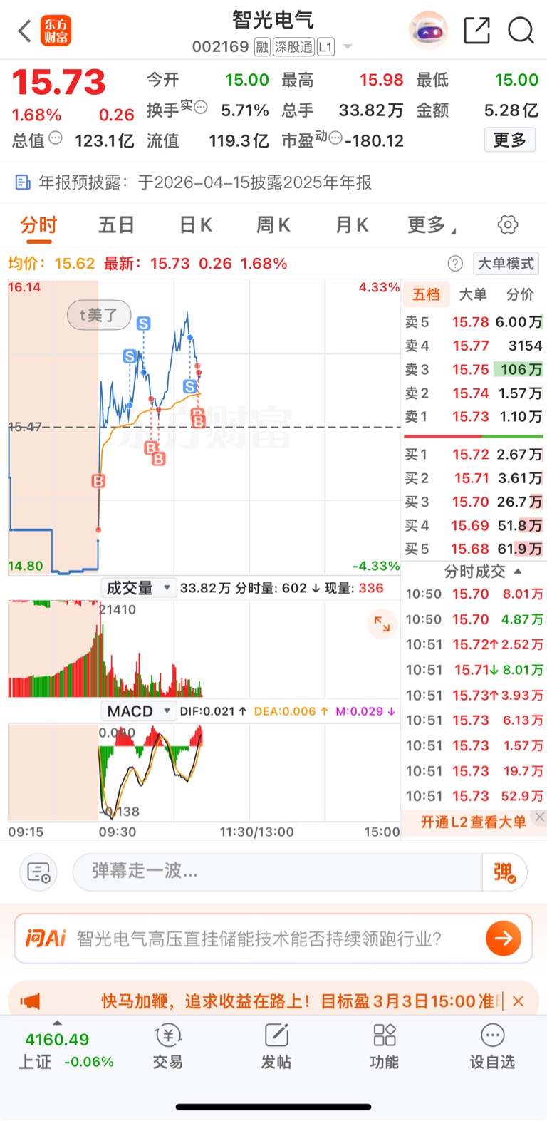 $智光电气(SZ002169)$ 爱你宝宝,今天不仅t爽了。而且还在集合竞价15加仓了,周末就想好低开加仓,看到集合竞价14.82的时候果断挂涨停加仓。别来骂我t,我不看好我就不会加仓。