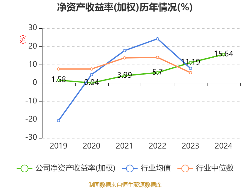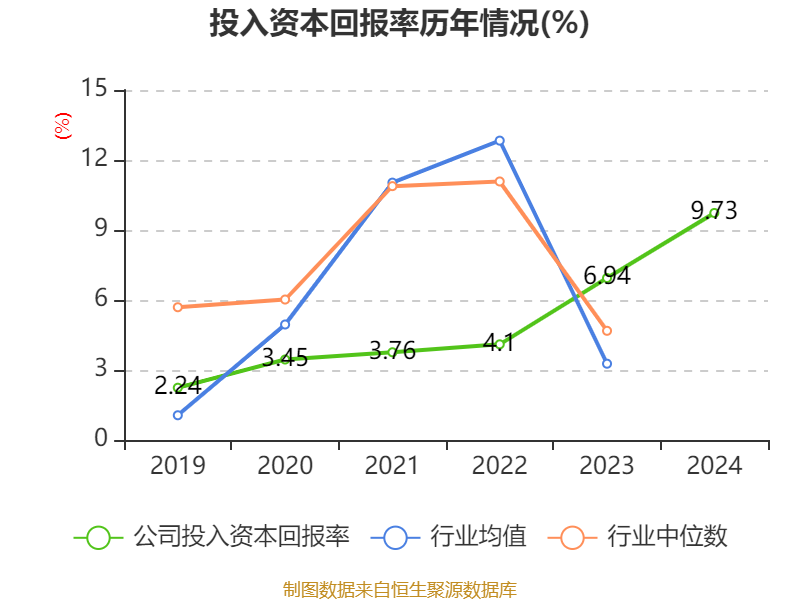 数据显示,2024年公司加权平均净资产收益率为15.64%,较上年同期上升4.45个百分点。公司2024年投入资本回报率为9.73%,较上年同期上升2.79个百分点。