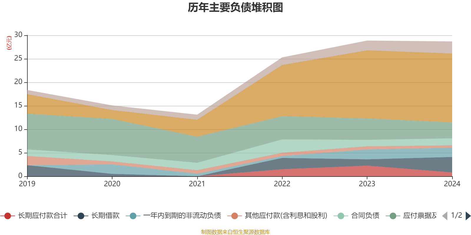 负债重大变化方面,截至2024年末,公司短期借款较上年末增加1.12%,占公司总资产比重下降3.16个百分点;应付票据及应付账款较上年末减少25.51%,占公司总资产比重下降3个百分点;长期应付款合计较上年末减少64.23%,占公司总资产比重下降2.93个百分点;长期借款较上年末增加146.61%,占公司总资产比重上升2.89个百分点。