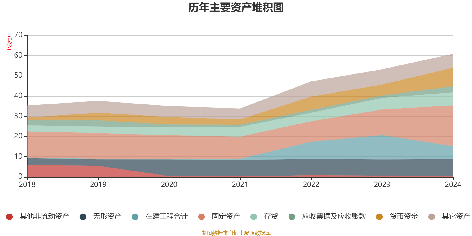 资产重大变化方面,截至2024年末,公司在建工程合计较上年末减少46.39%,占公司总资产比重下降11.96个百分点;固定资产较上年末增加58.62%,占公司总资产比重上升9.23个百分点;货币资金较上年末增加69.91%,占公司总资产比重上升4.92个百分点;应收票据及应收账款较上年末增加155.88%,占公司总资产比重上升2.76个百分点。