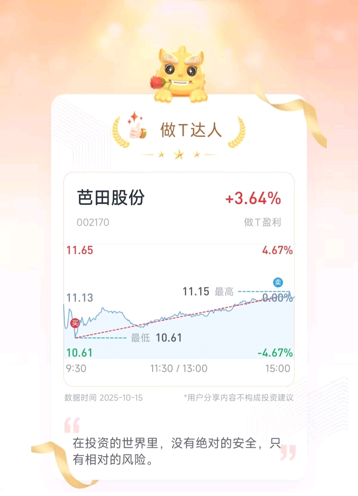 $芭田股份(SZ002170)$ 没买到最低点,也没卖在最高点