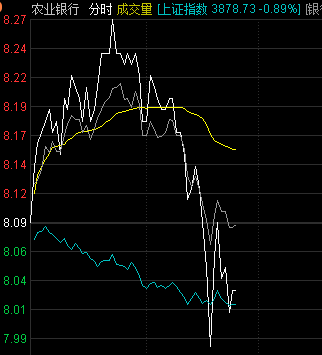 农业银行9:50分创新高后,开始下跌,中小股向上
