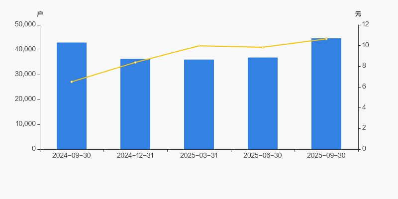 2024年9月30日至今,公司股东户数有所增长,区间涨幅为3.98%。2024年9月30日至2025年9月30日区间股价上涨63.66%。