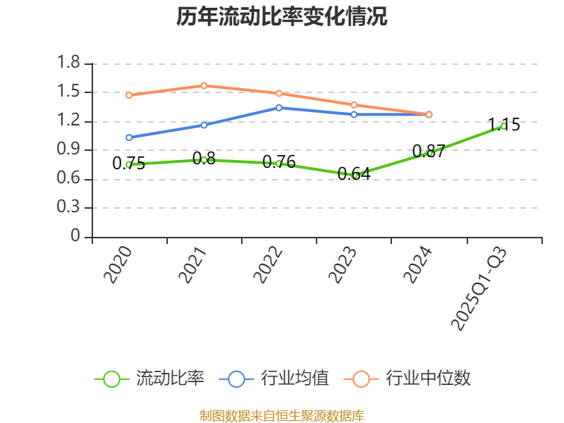 2025年前三季度,公司流动比率为1.15,速动比率为0.74。
