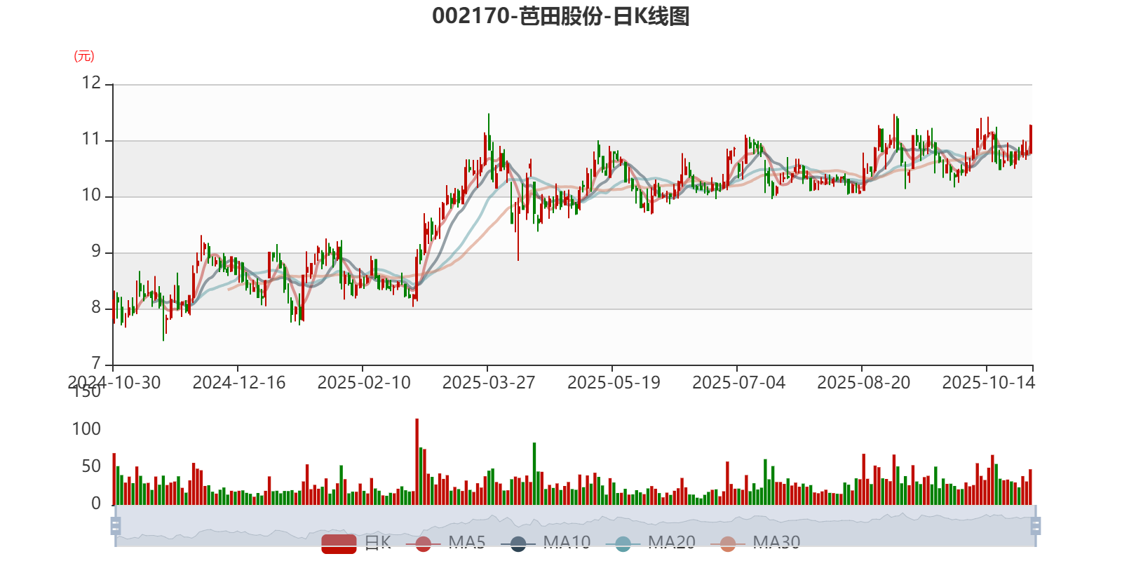中证智能财讯芭田股份(002170)10月30日披露2025年第三季度报告。前三季度公司实现营业总收入38.09亿元,同比增长56.50%;归母净利润6.87亿元,同比增长236.13%;扣非净利润6.82亿元,同比增长240.70%;经营活动产生的现金流量净额为8.57亿元,同比增长99.90%;报告期内,芭田股份基本每股收益为0.7127元,加权平均净资产收益率为19.55%。