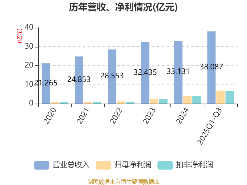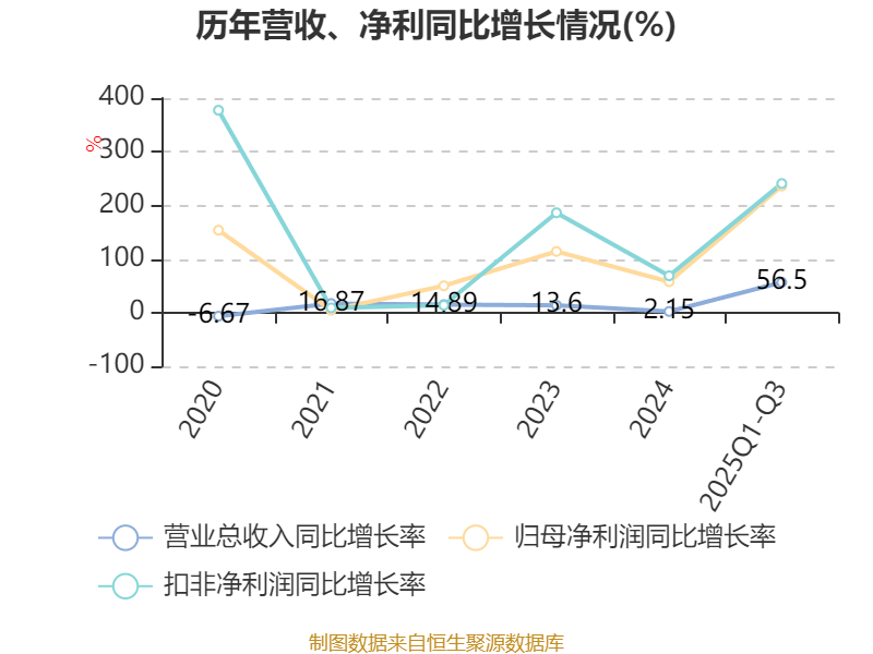 资产重大变化方面,截至2025年三季度末,公司固定资产较上年末增加22.41%,占公司总资产比重上升9.97个百分点;在建工程合计较上年末减少87.83%,占公司总资产比重下降9.18个百分点;货币资金较上年末减少50.6%,占公司总资产比重下降7.15个百分点;应收票据及应收账款较上年末增加49.98%,占公司总资产比重上升2.96个百分点。