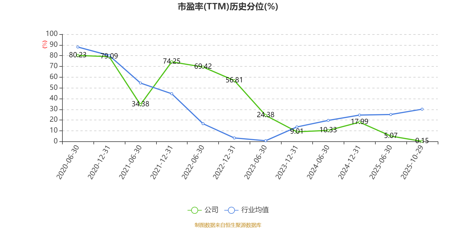 市盈率、市净率为负时,不显示当期分位数,会导致折线图中断。