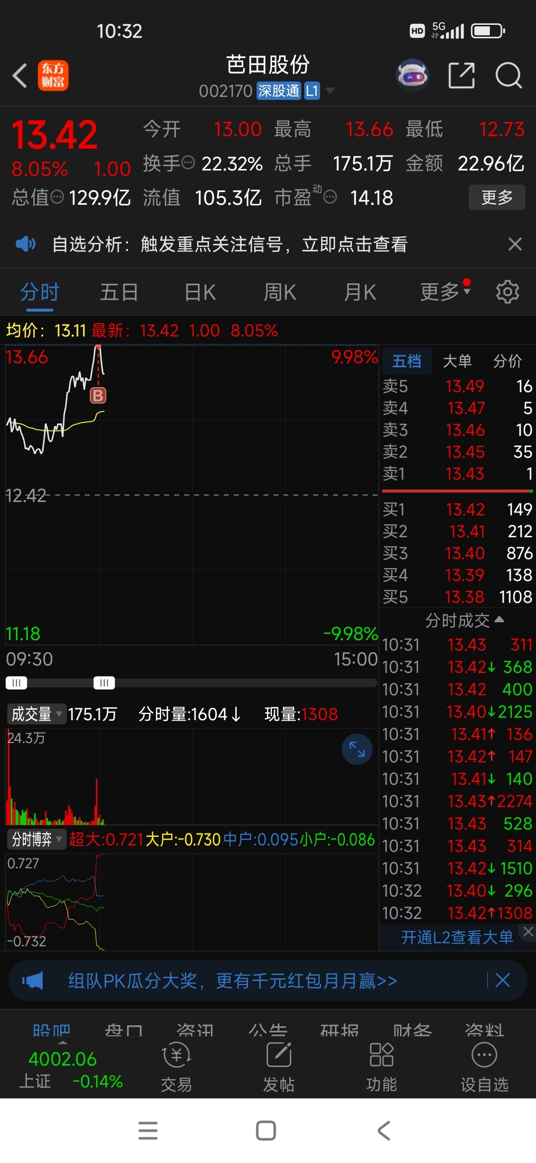 $芭田股份(SZ002170)$ 彻底完了,今天打两个板,两个板全费