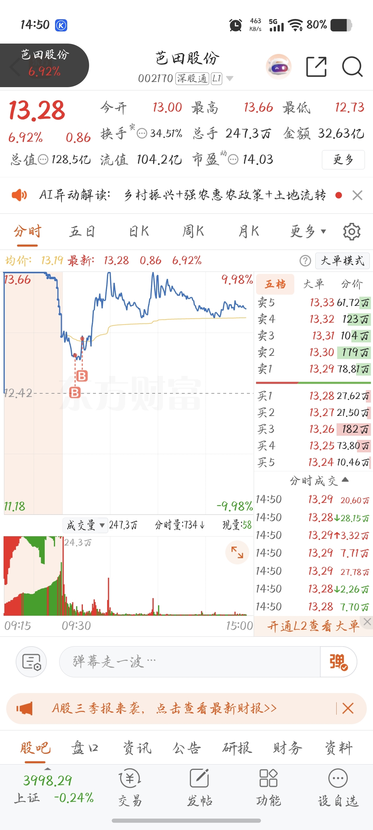 $芭田股份(SZ002170)$ 周一能活着出去吗