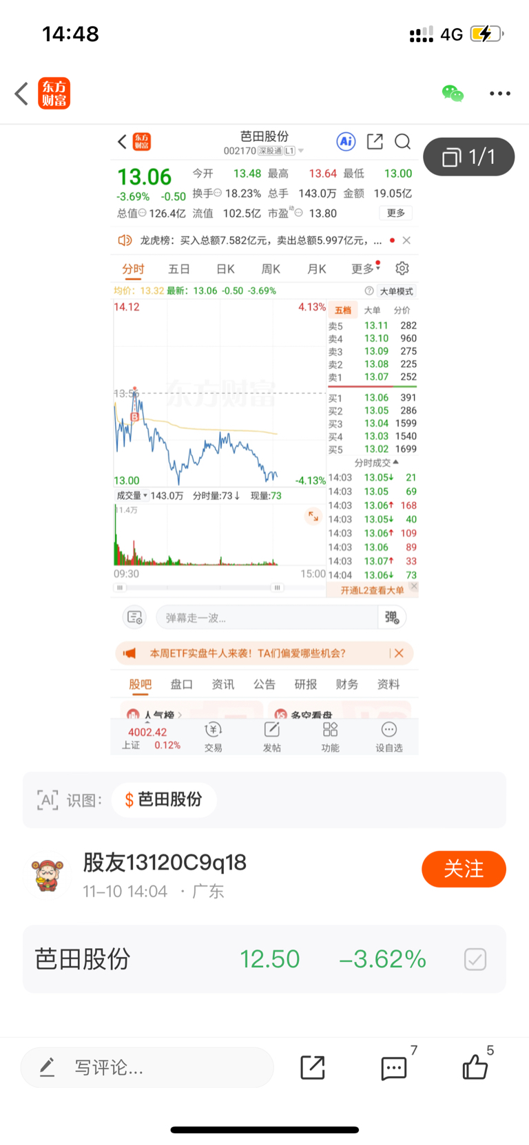 $芭田股份(SZ002170)$ 又一个追高了满嘴吐米共的SB。10不买13买,买了来我帖子下面朝圣,笑死人。