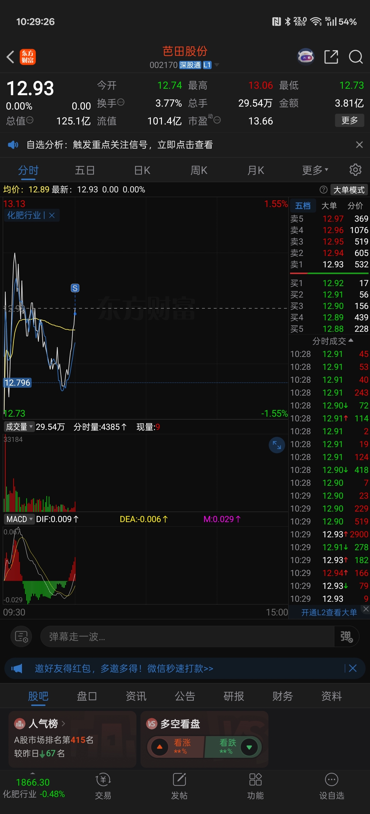 $芭田股份(SZ002170)$ 卖一点,点个火