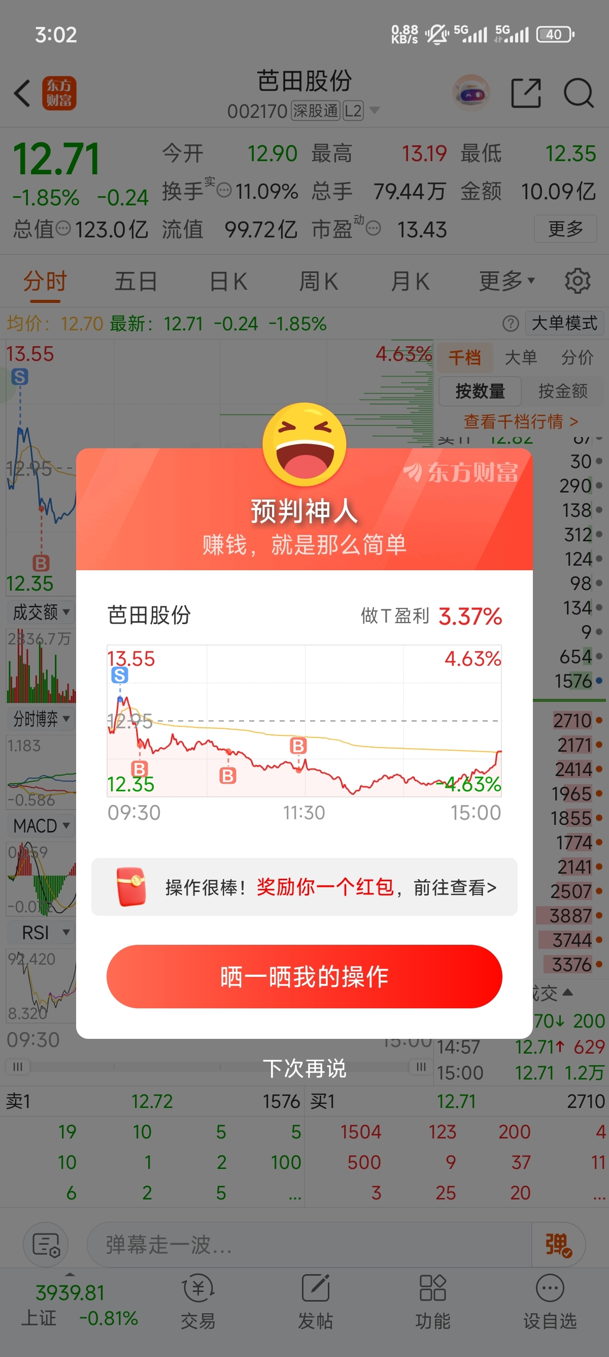 $芭田股份(SZ002170)$ 今天居然还赚了