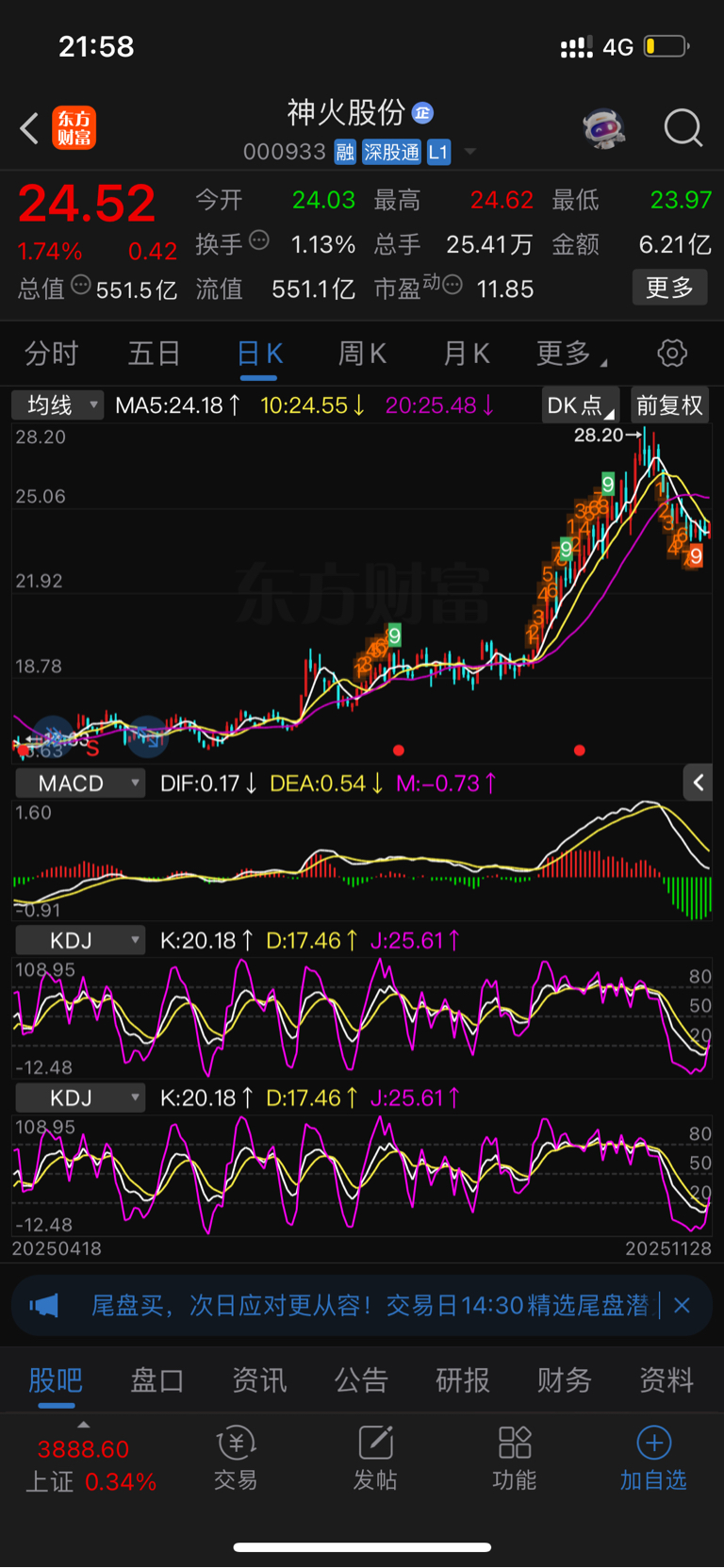 有兴趣的朋友可以研究下神火股份,因为现在的芭田像这个票在8.5号左右的走势,也是