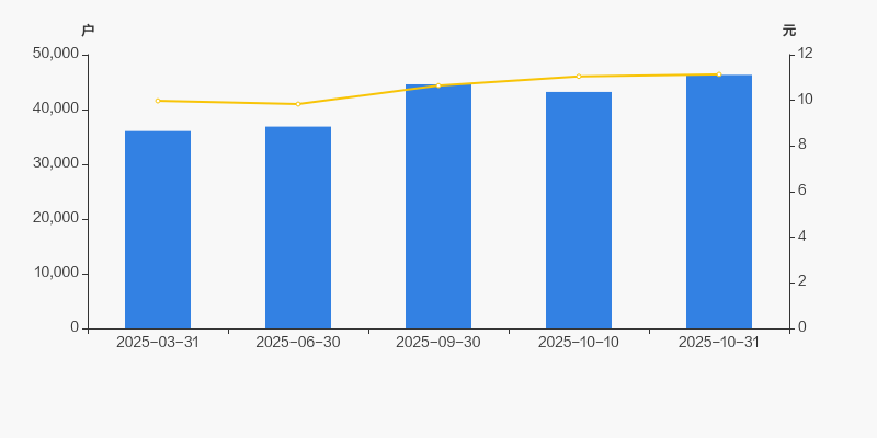 2025年3月31日至今,公司股东户数显著增长,区间涨幅为28.43%。2025年3月31日至2025年10月31日区间股价上涨11.59%。