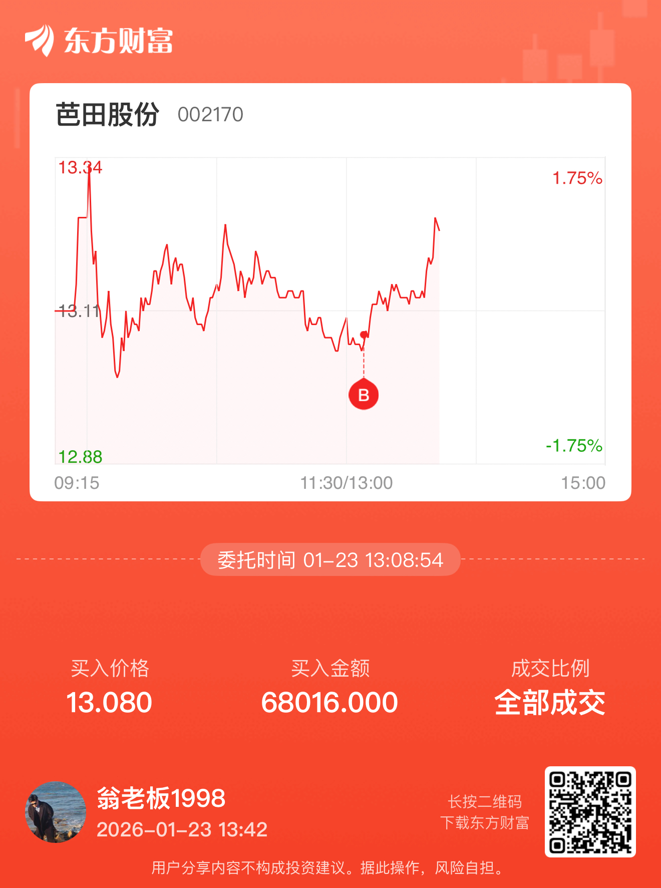 $芭田股份(SZ002170)$ 今天刚跟东方财富投顾进的,不知道胜负如何