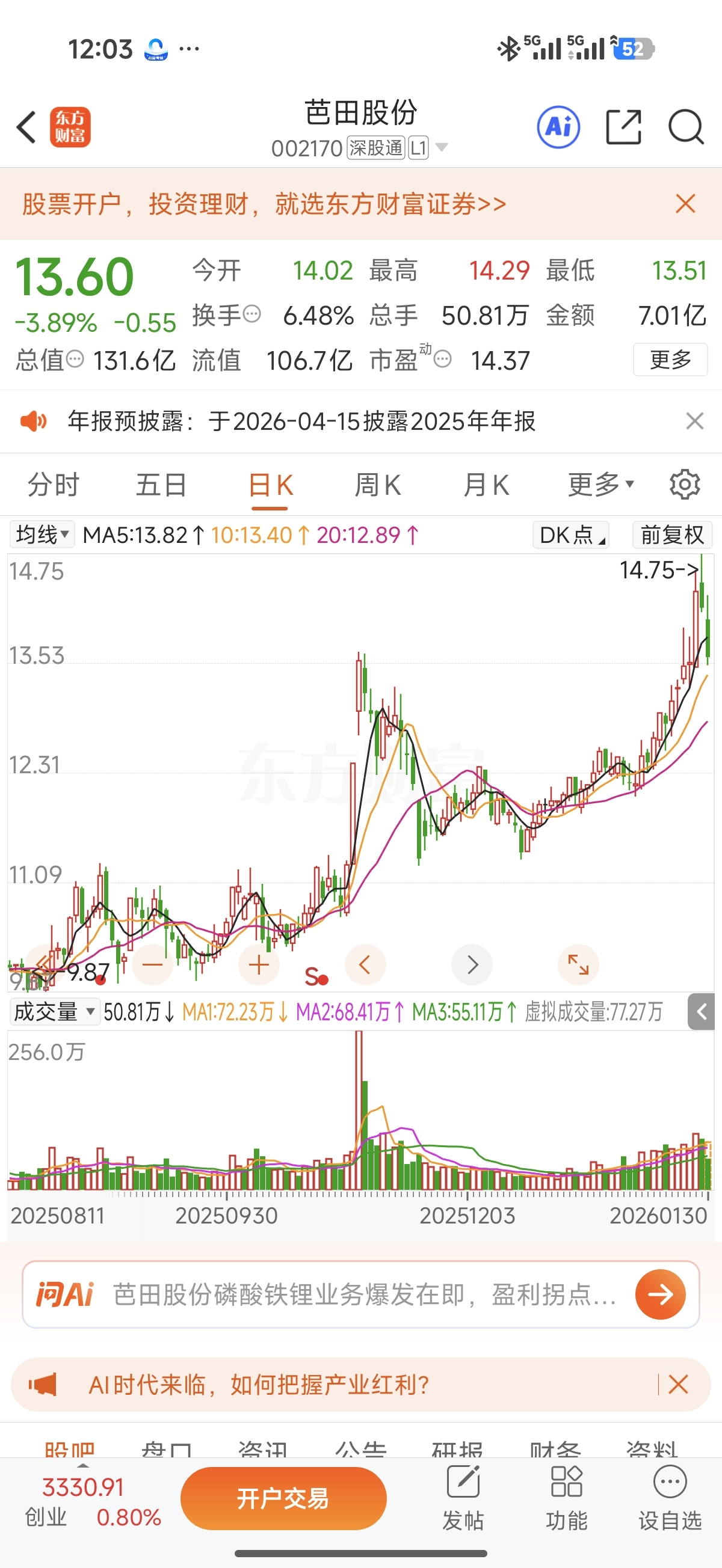 $芭田股份(SZ002170)$ 能涨停,因为我又买了