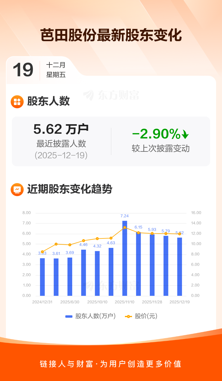 芭田股份:截至12月19日最新股东户数5.62万户,较上期减少2.90%