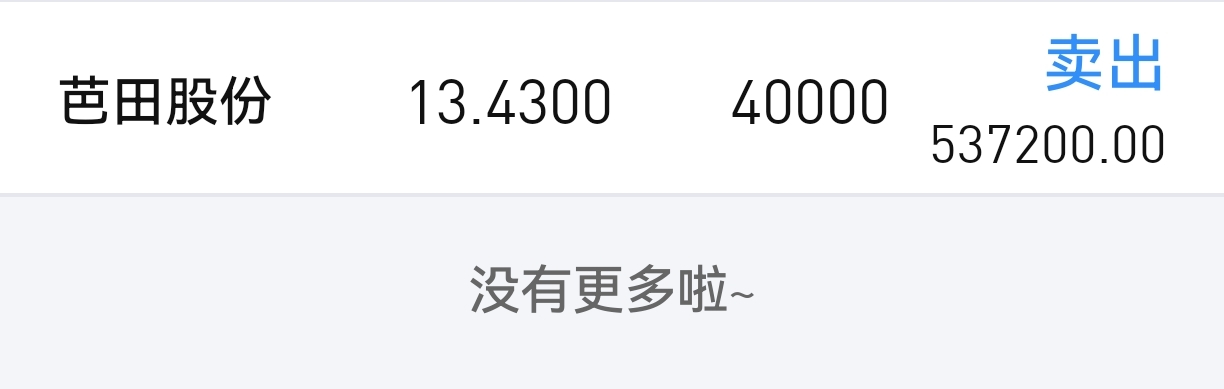$芭田股份(SZ002170)$ 今天继续跑路,这波抄底平均赚三毛,不错了,毕竟大行情不好