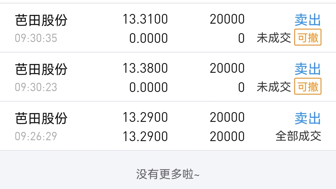 $芭田股份(SZ002170)$ 卖卖卖,第一笔成交了