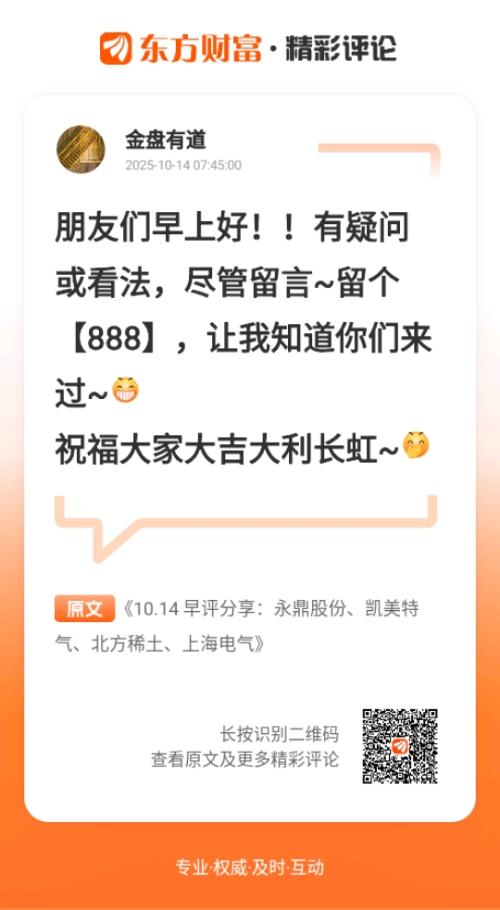 对比今年4月7日的恐慌,昨天的大盘走势可谓波澜不惊,收盘只是微跌。从收盘来看,慢牛格局没有改变,大家要相信,牛市并不是偶然,它是多年筹划的产物,肩负着重要的割九菜任务,这可不是开玩笑的,不会那么容易就结束。06年、15年、25年,周期差不多了,新九菜00后已经长起来,它们不会错过这个收割的机会的。趋势起来了也不是说停就能停的。但短期来讲,仓位重的,金哥建议减点仓,中美博弈有不确定性,减仓就进可攻退可守。另外,不想被割的话,关Z金哥这个A股老炮儿,未来牛市的顶部,哥带你潇洒抽身。